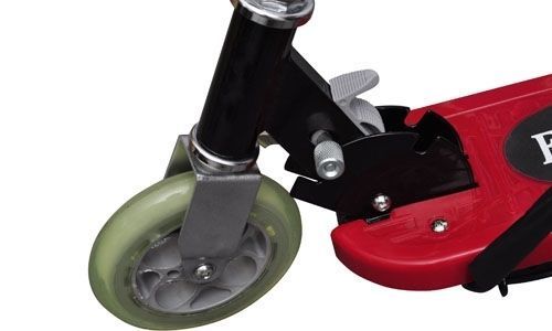 E-scooters tend to travel a lot faster than normal scooters and require more advanced braking techniques and equipment. Our e-scooters have a brake lever attached to the steering handle. Depressing the brake will disengage power to the motor as well as electrically slowing the rear wheel down via a more robust brake pad.