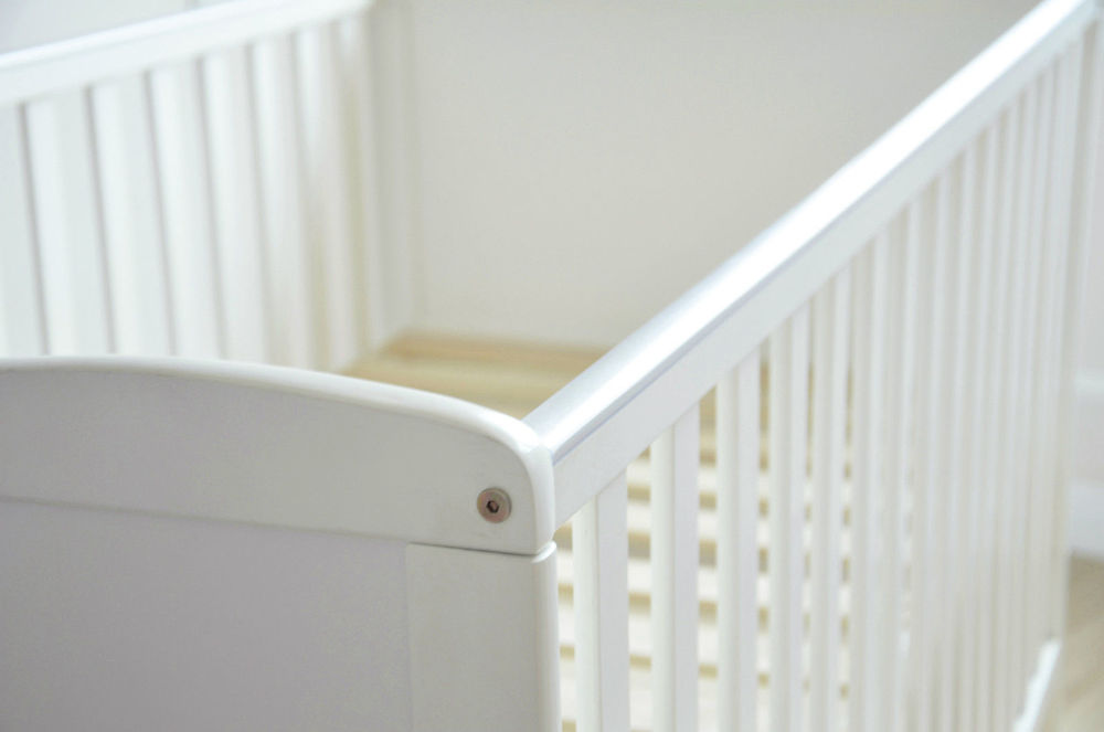 This spacious cot bed (145*75 cm) is made mainly from solid pine. It can easily be converted to a junior bed by removing the side rails and dividing the foot end, featuring two adjustable base positions. Suitable from birth to 18 months as a cot and 18 months onward as a toddler bed.
